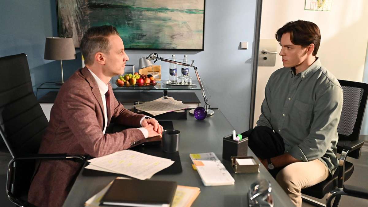 Kilian (Marc Dumitru, l.) verweist Johannes (Maximilian Schneider) unnachgiebig auf seinen Platz. Foto: RTL / Julia Feldhagen