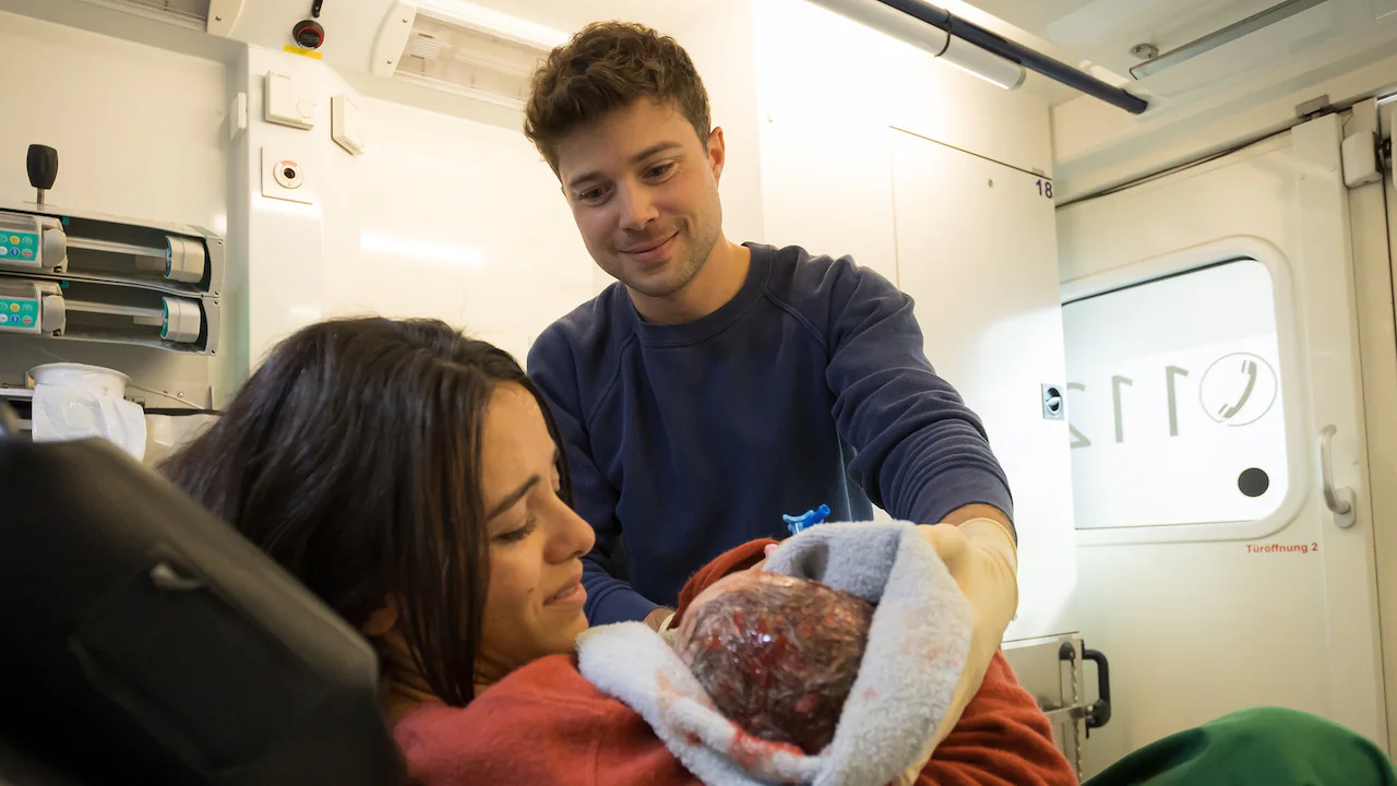 Kris Haas hilft Fadila Awad im RTW, ihr Kind zu entbinden. Während das Erlebnis bei Kris ein großes Glücksgefühl verursacht, fällt es Fadila schwer, das Neugeborene anzunehmen. Sie wurde bei der Flucht aus Syrien von ihrem Mann getrennt und befürchtet, dass er im Mittelmeer ertrunken sein könnte.